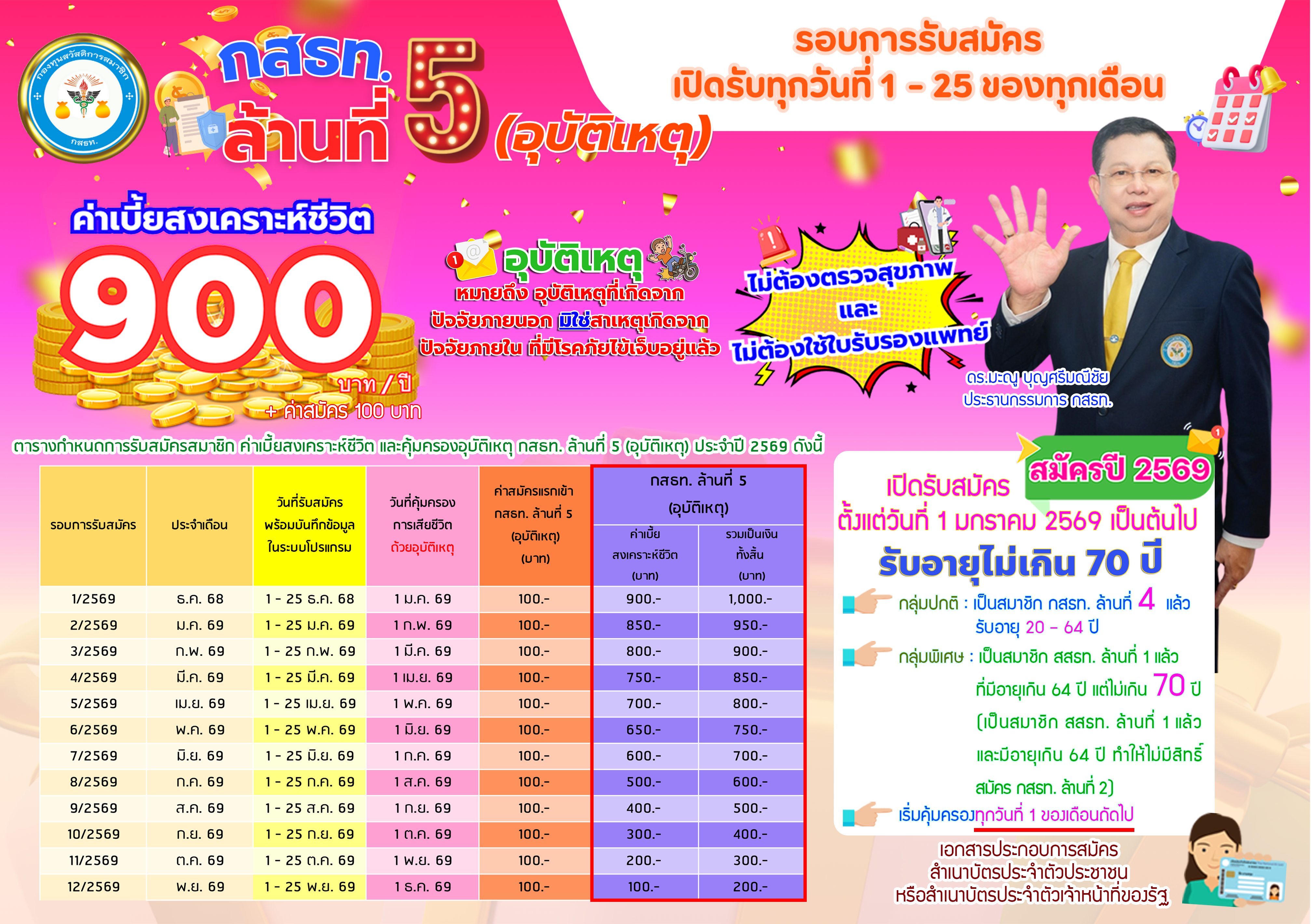 กำหนดเปิดรับสมัครสมาชิก กสธท. ล้านที่ 5 (อุบัติเหตุ) ประจำปี 2569.pdf