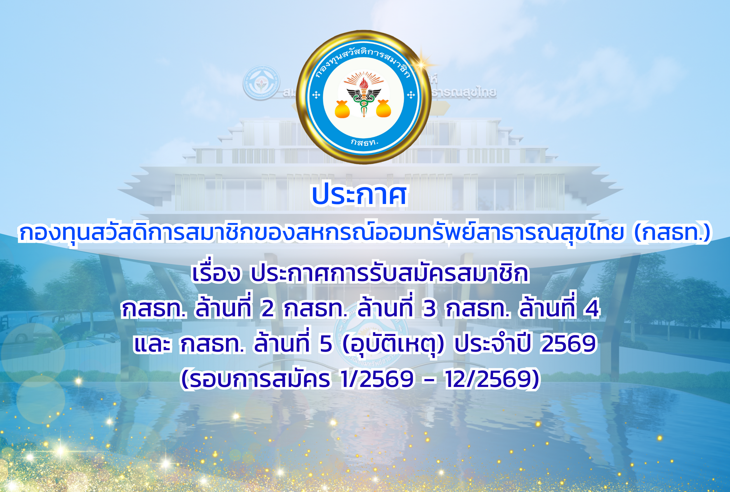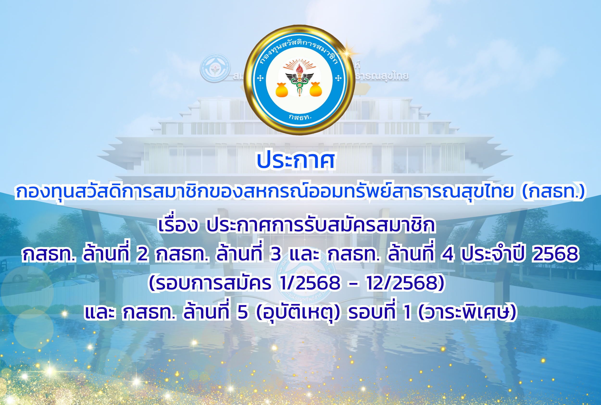 ประกาศการรับสมัครสมาชิก กสธท. ประจำปี 2568 รอบการสมัคร 1/2568 - 12/2568 กสธท. ล้านที่ 5 (อุบัติเหตุ)