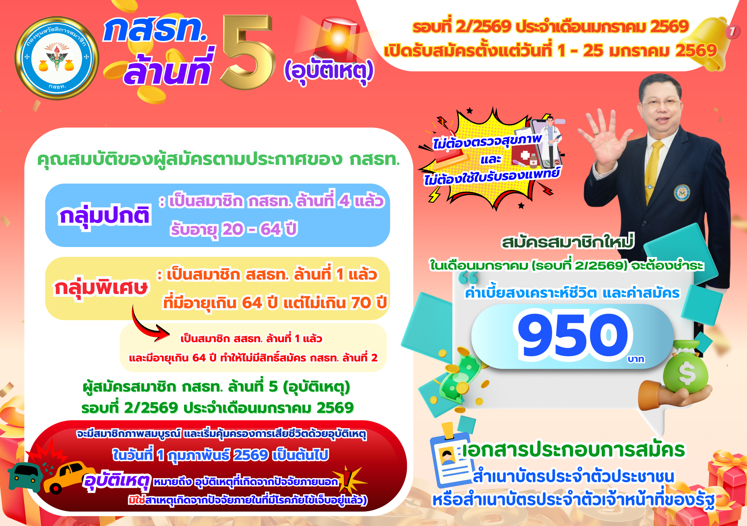กำหนดเปิดรับสมัครสมาชิก กสธท. ล้านที่ 5 (อุบัติเหตุ) ประจำปี 2569.pdf